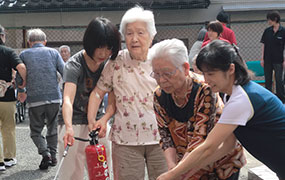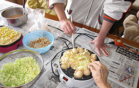 ご入居者様が過ごされてきた日常生活をできるだけ思い出し、ご入居者様と職員が家族のような生活を送っていただきたいと思っております。部屋の掃除やおやつ作りもご一緒に、昔を思い出しながら参加していただいています。