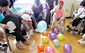 隣接のクレアトゥール60の常勤の理学療法士の指導を受け、介護士が起立・歩行訓練、ストレッチ体操、口腔体操などをおこなっています。レクレーションと作業療法を兼ねた行事を実施し、ご入居者様の身体機能の維持、向上に努めています。